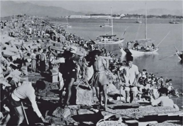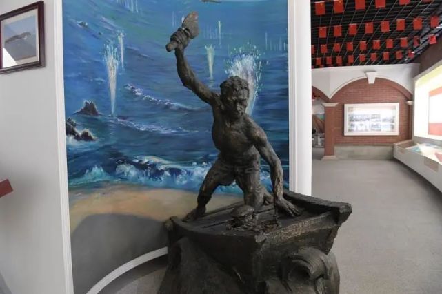 年輕小伙俯爬船頭,高舉斧頭,作勢欲砍斷繩纜……這是紀(jì)念館里一尊醒目的雕像,再現(xiàn)了年輕水手曾亞掽勇救三十幾人的英模事跡,譜寫了時(shí)代永不褪色的英勇之歌。在這場移山填海的工程中,1萬多名建設(shè)者風(fēng)餐露宿,僅憑鋼釬、大錘、板車、木船等,用時(shí)兩年又三個(gè)月就完成了長2212米、堤高平均近20米,最高處近30米,堤面頂寬19米,用花崗石75萬立方米的高集海堤工程。