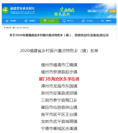 廈門(mén)市海滄區(qū)東孚街道“榜上有名”