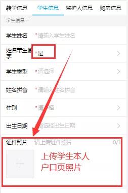 如果學(xué)生姓名帶生僻字,則“姓名帶生僻字”選擇“是”,須上傳學(xué)生本人戶口頁(yè)照片。