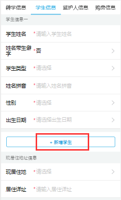 如果學(xué)生是多胞胎或您多個(gè)孩子滿足就讀同一年級(jí),點(diǎn)擊“新增學(xué)生”,正常填寫信息即可。