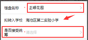 海滄區(qū)房戶兩一致對(duì)象:“樓盤名稱”請(qǐng)?zhí)钸x房產(chǎn)所在樓盤/小區(qū)名稱,不能選其他樓盤/小區(qū),否則可能審核不通過,請(qǐng)慎重選擇。“擬轉(zhuǎn)入學(xué)校”系統(tǒng)將根據(jù)您選擇的樓盤名稱自動(dòng)關(guān)聯(lián)對(duì)應(yīng)片區(qū)學(xué)校。
