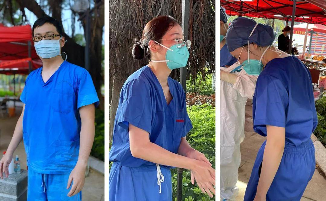 ▲復(fù)旦中山廈門醫(yī)院馳援人員脫下防護(hù)服滿臉通紅、全身濕透。