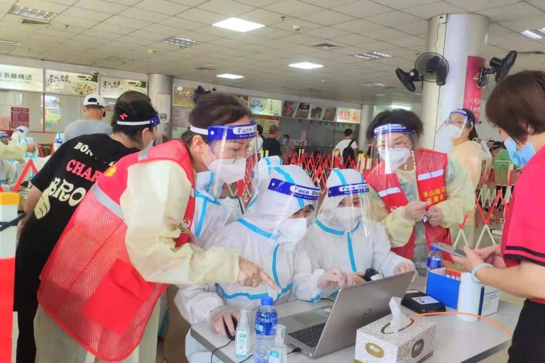 ▲禾山街道馳援翔業(yè)集團(tuán)T3航站樓核酸檢測采集點(diǎn)