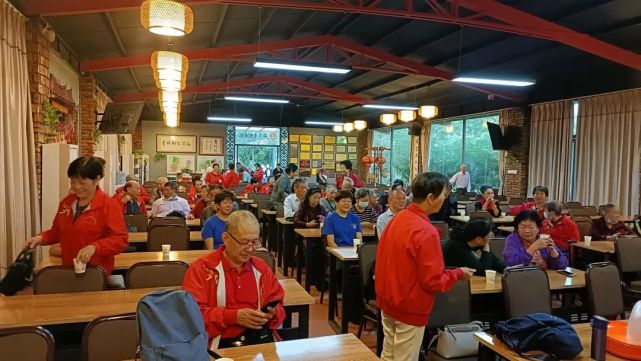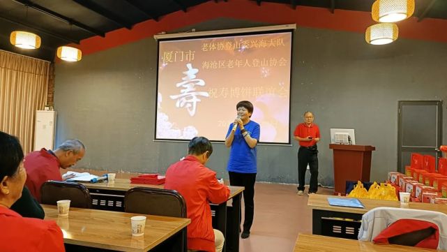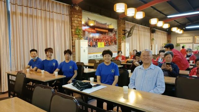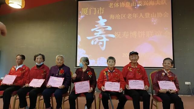 在青礁村院前社兩岸青創(chuàng)書院,廈門市老體協(xié)登山委興海大隊、海滄區(qū)老年人登山協(xié)會的老人們和石室禪院慈善會的義工們相聚于此,為兩個團(tuán)體里80周歲以上的老人們賀壽。