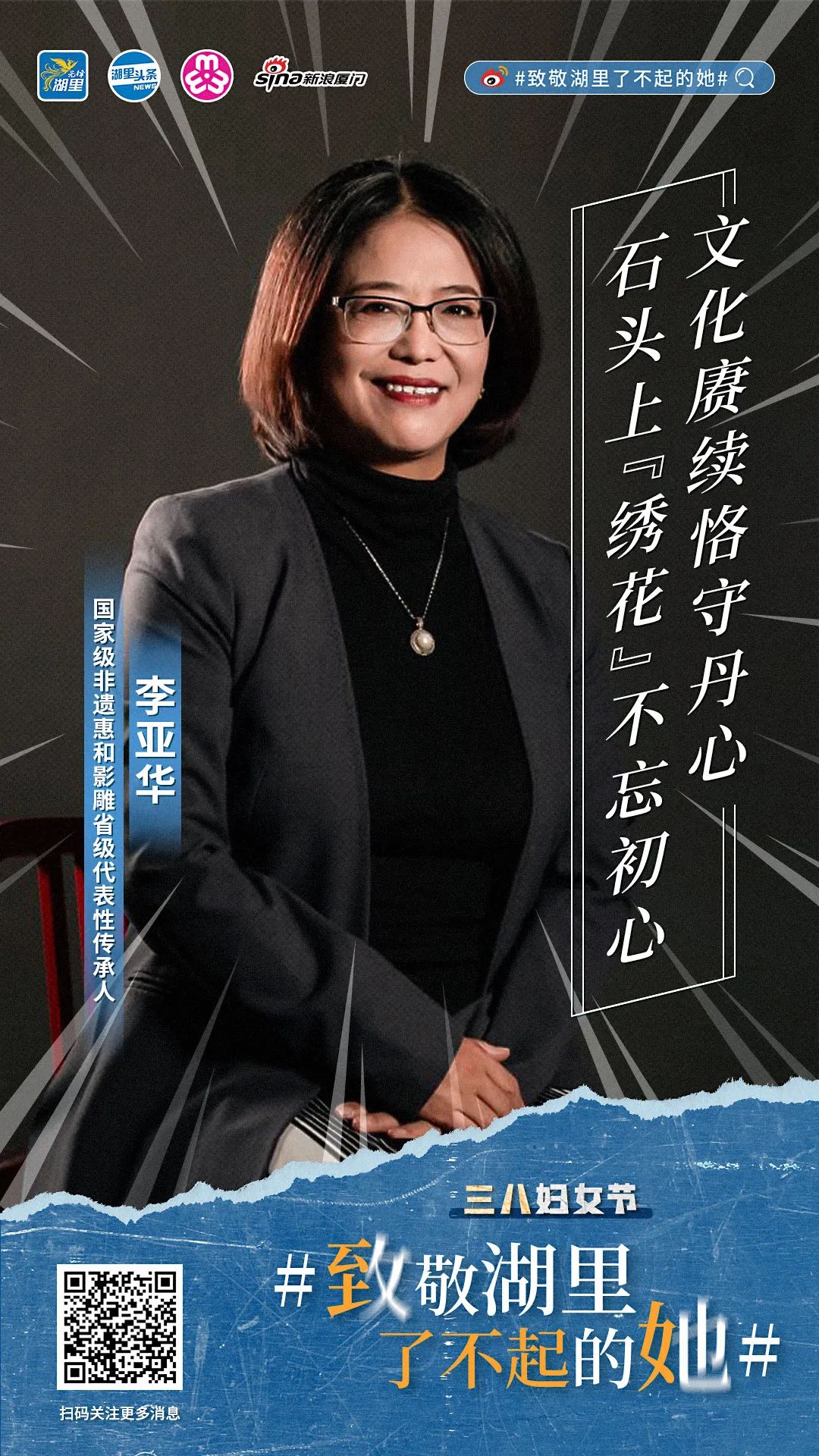 2019年廈門金磚會晤期間,李亞華為中俄兩國元首展示惠和影雕技藝,習(xí)近平總書記盛贊其技藝為“她們繡花是在石頭上,不是在絲綢上”。技為本,德為先。自2008年起,李亞華以惠和石文化園為基地,每年舉辦婦女兒童、親子類教育活動多達200多場,為推廣非遺技藝、閩南文化、家風(fēng)家教、文化認同等工作,貢獻卓越的“她力量”。
