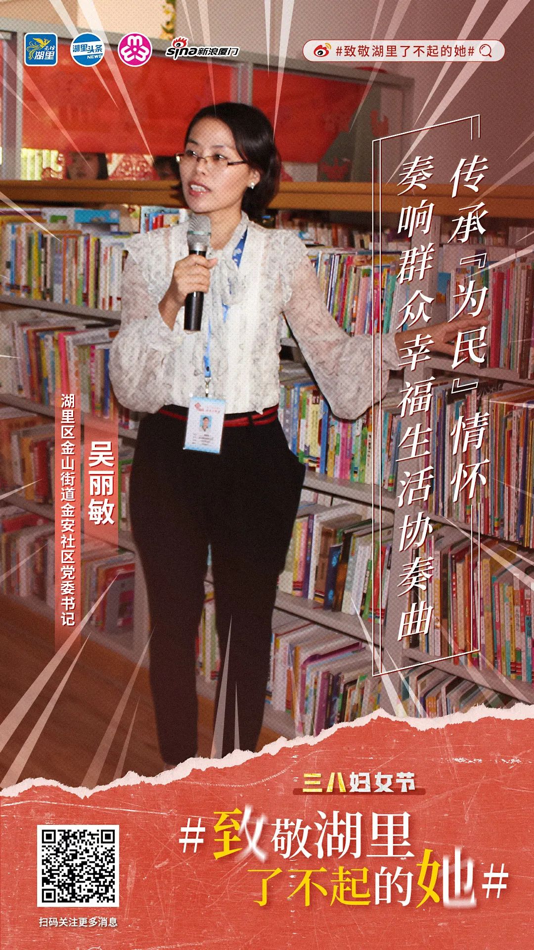 傳承“為民”情懷,作為金山街道金安社區(qū)的黨委書記,吳麗敏團結(jié)和帶領(lǐng)社區(qū)工作人員和廣大居民在幸福社區(qū)建設(shè)中大步前進。她艱難探索出小區(qū)治理的“1314”近鄰模式,打造志愿服務(wù)金字招牌,在抗擊新冠肺炎疫情阻擊戰(zhàn)中,發(fā)動志愿者通過“線上+線下”立體防控疫情戰(zhàn),受到國務(wù)院聯(lián)防聯(lián)控機制工作指導(dǎo)組肯定。