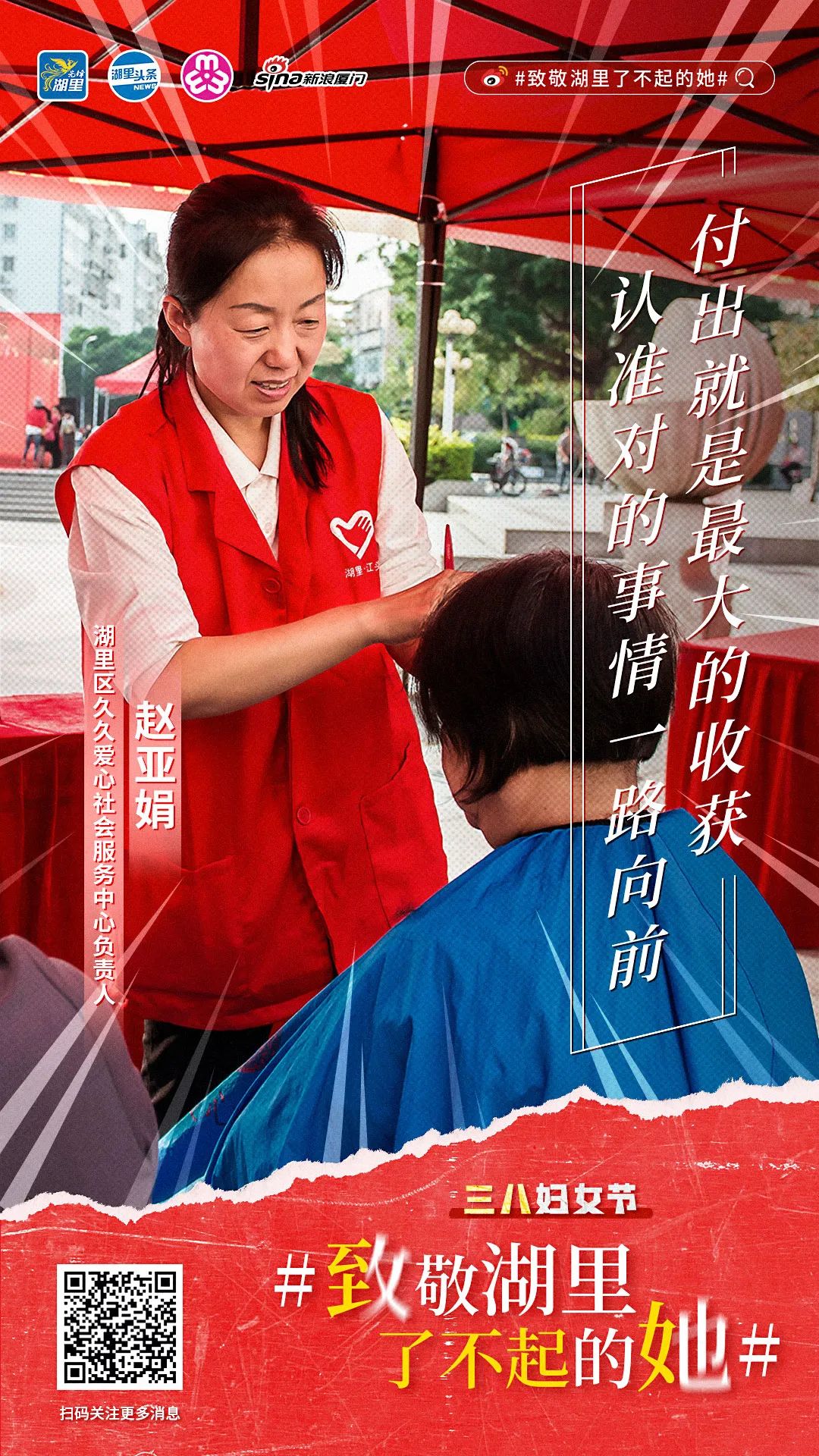 十幾年來專業(yè)從事助老志愿服務,趙亞娟堅持為金尚社區(qū)十多位空巢老人義務理發(fā)。2009年,她成立了久久愛心志愿服務隊,服務項目從最初的理發(fā),擴大到瑜伽、素食、心理疏導、小家電維修等十余個項目。趙亞娟說:“做志愿看似幫助他人,其實是讓自己成長的非常好的平臺;把自己的愛意傳遞出去,收獲的是來自世界的愛意與美好,心里的滿足感是無價的。”