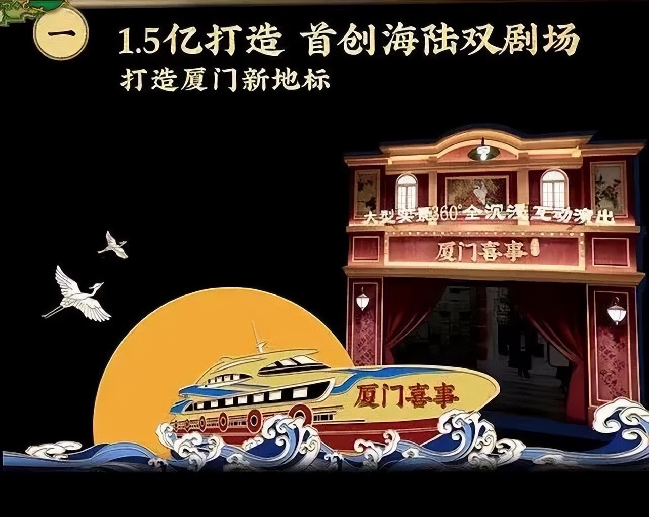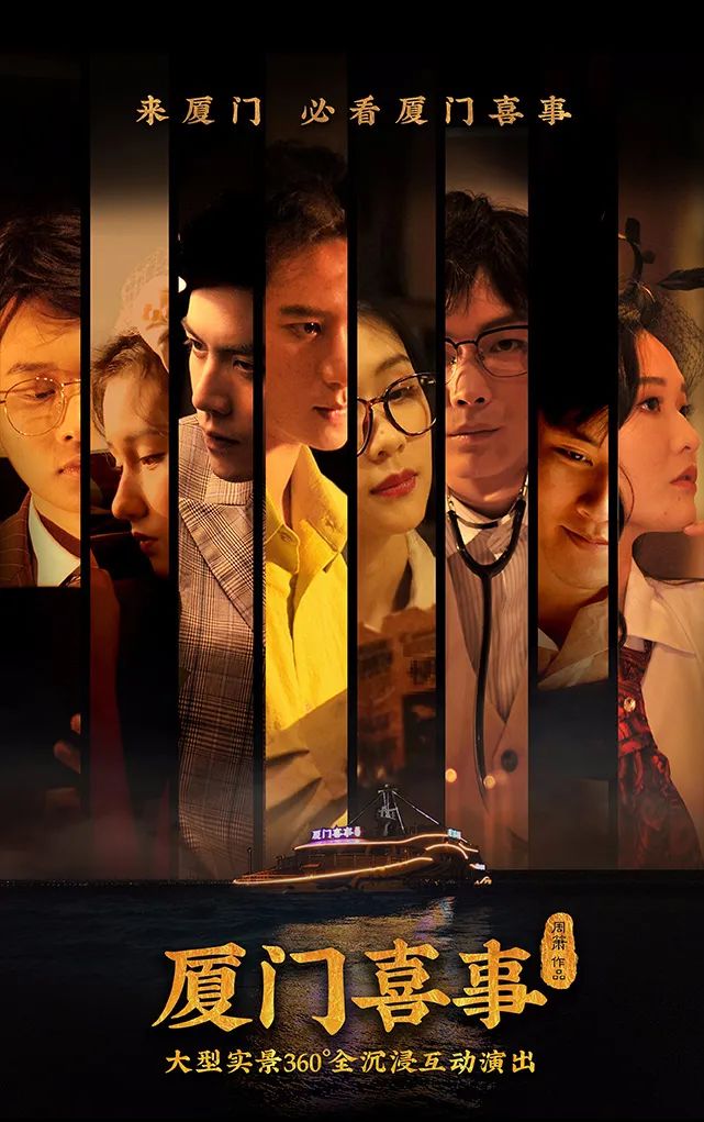 大型實景360°全沉浸式互動演出《廈門喜事》故事發(fā)生在1949年的南洋,以“南洋華僑歸國”為歷史背景,通過8位主要人物,帶出8條不同的故事線,構(gòu)成“回家”這一主題,展現(xiàn)國家情懷和廈門獨特的僑鄉(xiāng)文化。