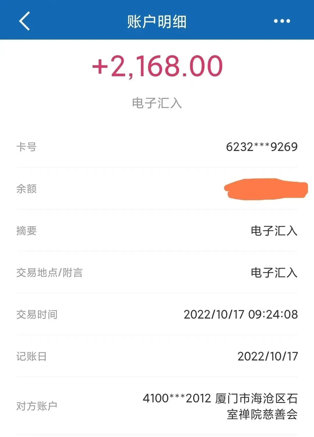 10月17日,第二筆捐贈(zèng)款2168元已經(jīng)轉(zhuǎn)給吳梓涵,梓涵的父母代梓涵向所有捐贈(zèng)的慈善會(huì)會(huì)員和愛(ài)心人士表達(dá)深深的感謝。