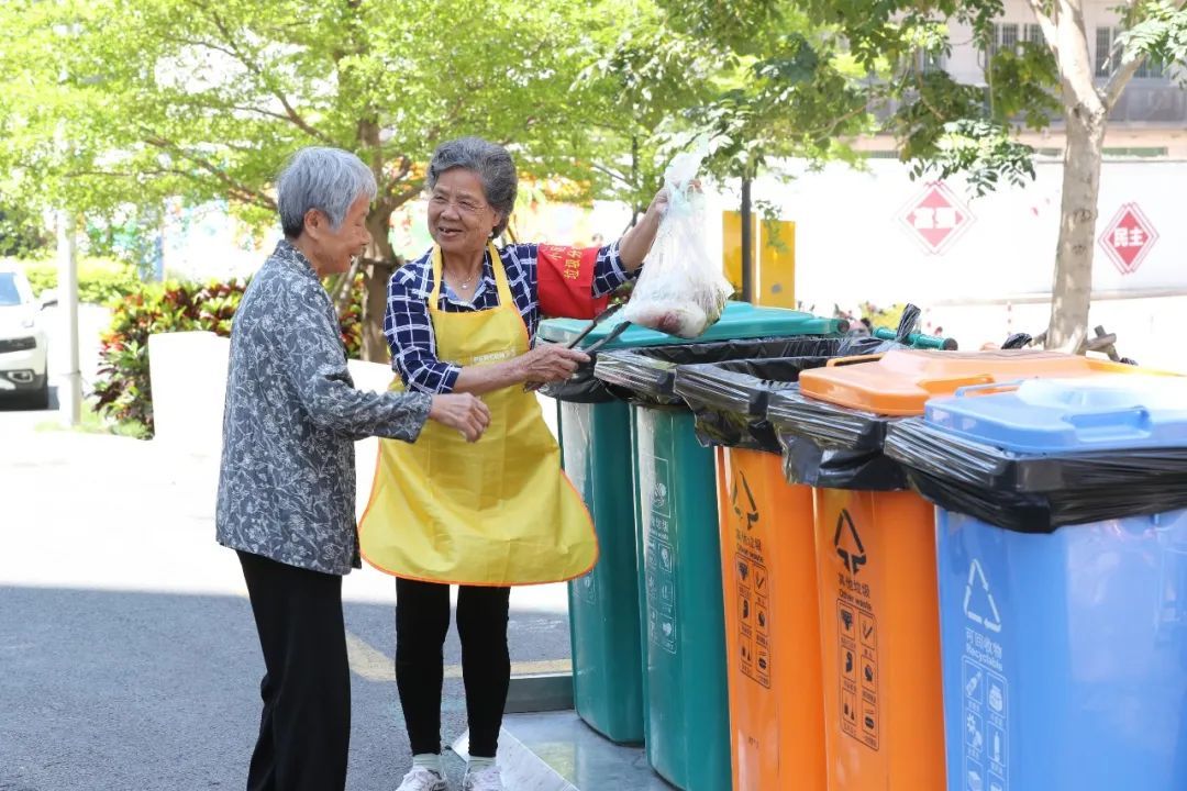 ▲后埔社區(qū)江頭苑小區(qū)黨支部書(shū)記林麗珍指導(dǎo)居民垃圾分類