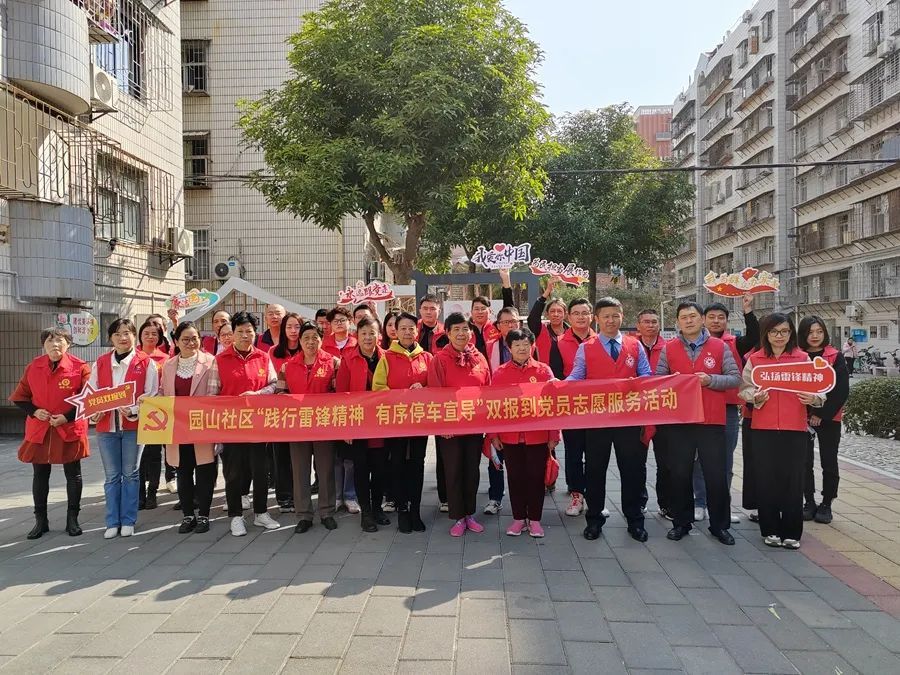 ▲園山社區(qū)踐行雷鋒精神,宣導(dǎo)有序停車
