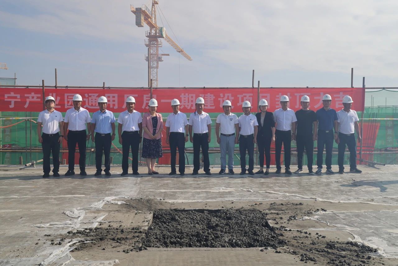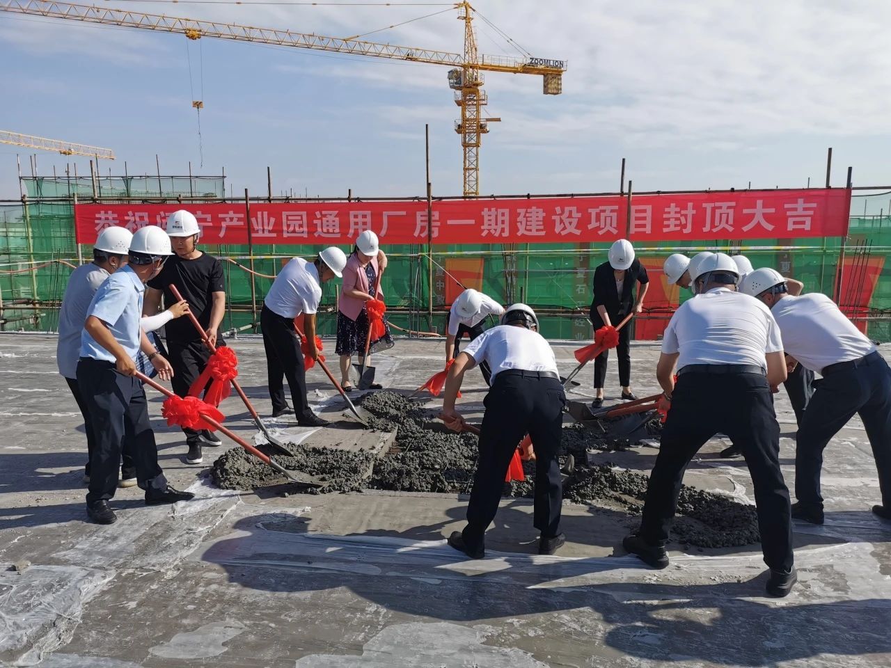 8月8日上午,閩寧產(chǎn)業(yè)園通用廠房一期建設項目——16棟通用廠房主體結構順利封頂。湖里區(qū)考察團一行人出席封頂儀式。