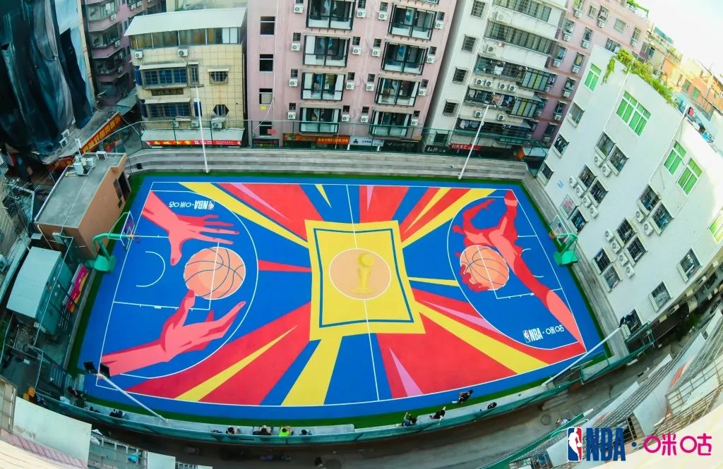 2023年1月,這座承載無(wú)數(shù)人記憶的球場(chǎng)再次升級(jí),中國(guó)移動(dòng)咪咕與NBA聯(lián)手,將其改造為全球首個(gè)公益藝術(shù)籃球場(chǎng)。紅藍(lán)交織的幾何圖形、街頭風(fēng)格的視覺(jué)涂鴉,不僅吸引年輕人紛紛打卡,更延續(xù)了社區(qū)籃球的開(kāi)放傳統(tǒng)。