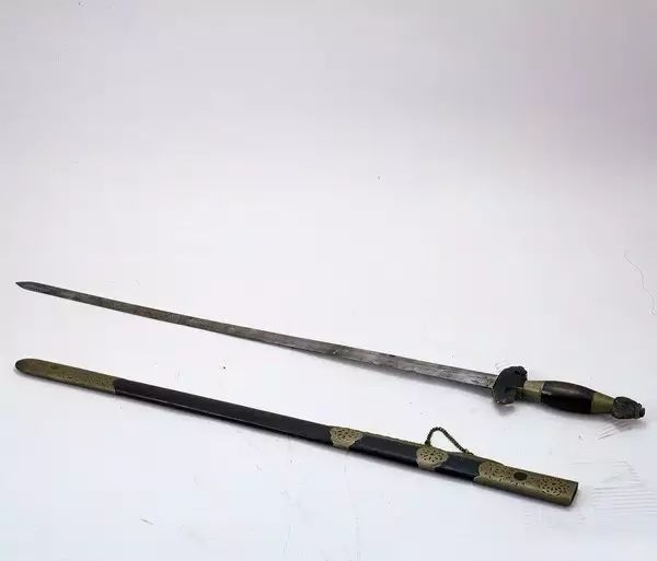 我身長100厘米,由精鋼劍身和木質(zhì)劍鞘組成。身上有錯銅北斗七星圖案,下書“披荊斬棘為國增光”及“龍泉民字號制”;背面寫著“陳嘉庚惠存 浙江龍泉各界敬贈 廿九年九月”字樣,是浙江龍泉的各界群眾感念陳嘉庚先生的民族精神,敬贈先生一把龍泉劍。