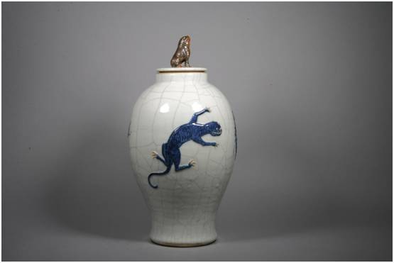 青花哥釉五毒蓋罐(清·乾隆)