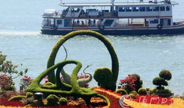 ▲廈門鷺江道輪渡的綠雕“琴音鷺波”,迎著優(yōu)柔的海風(fēng)展現(xiàn)曼妙曲線。