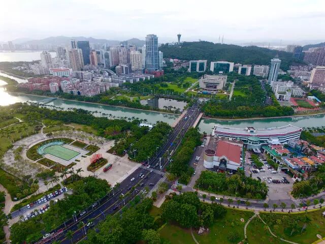 空中俯瞰廈門白鷺洲公園及廈門市政府一帶景色(8月24日攝)。新華社記者 姜克紅 攝