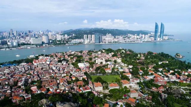 這是鳥瞰廈門鼓浪嶼和廈門島(8月24日攝)。新華社記者 王建華 攝