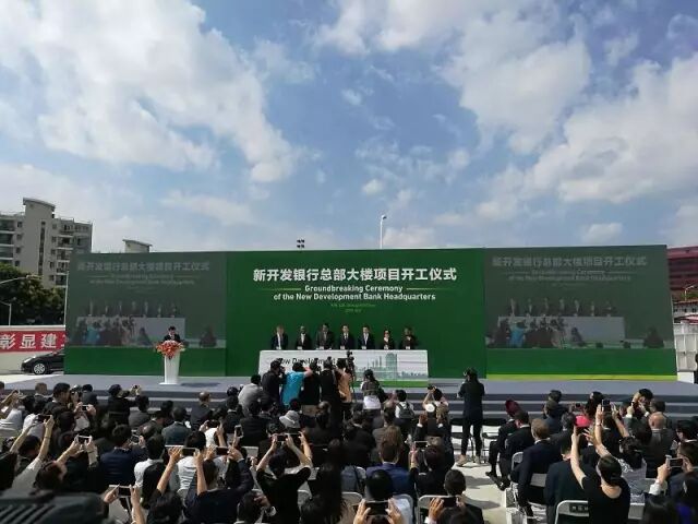 2017年9月2日上午,新開發(fā)銀行的總部大樓開工儀式在上海世博園舉行。金磚國家新開發(fā)銀行3日在廈門與我國福建、湖南、江西三省分別簽署貸款協(xié)議,以支持這三個省有關(guān)綠色發(fā)展項目建設(shè)。