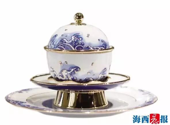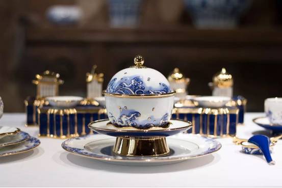國(guó)宴瓷的設(shè)計(jì)團(tuán)隊(duì)來(lái)自深圳國(guó)瓷永豐源,公司董事長(zhǎng)劉權(quán)輝說(shuō),整套國(guó)瓷圍繞“閩南核心、中國(guó)文化、時(shí)代印記、世界大同”的設(shè)計(jì)理念展開(kāi),創(chuàng)作靈感來(lái)源于廈門(mén)的自然山水和人文景觀。“由于是國(guó)宴,所以整個(gè)創(chuàng)作的思路必須放置在中國(guó)文化的大背景下來(lái)考慮,而廈門(mén)因海而生、因海而興,所以選擇了古代陶瓷上經(jīng)典的海浪作為主要視覺(jué)元素,同時(shí)浪花也對(duì)應(yīng)著會(huì)標(biāo)中的五國(guó)風(fēng)帆,寓意金磚國(guó)家的合作從這里揚(yáng)帆起航,駛向更加光明的未來(lái)。”