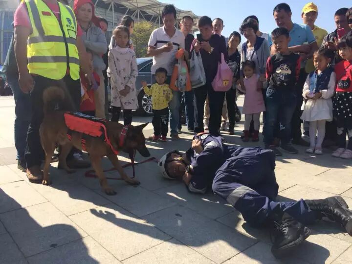 在現(xiàn)場(chǎng)為小朋友們救援演示