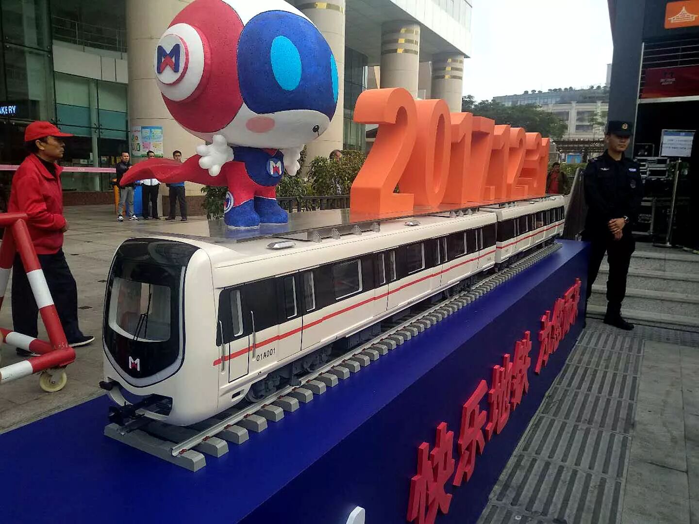 鎮(zhèn)海路站門(mén)口的廈門(mén)地鐵車(chē)輛模型