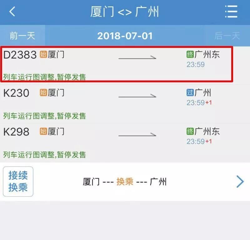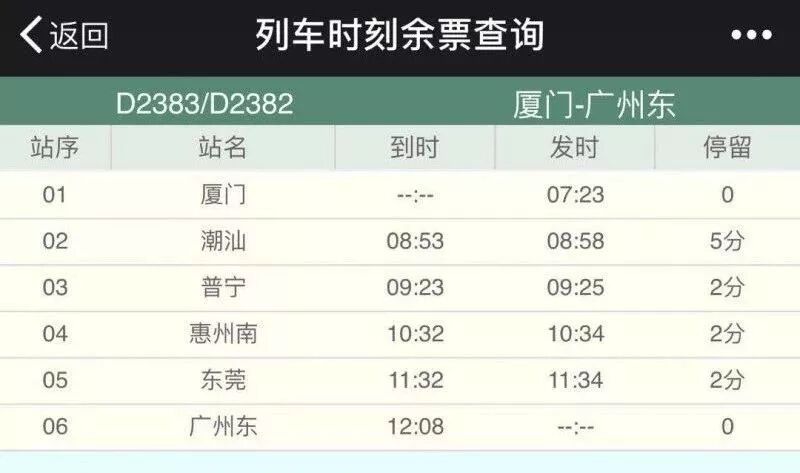 由廈門至廣州東的火車多了一班動車D2383