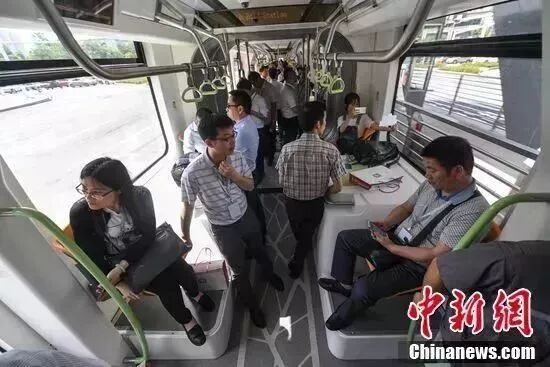 ?載量超大:三節(jié)編組智軌列車(chē)最大載客人數(shù)307人,比BRT100人的運(yùn)量大,比地鐵500人以上要少。
