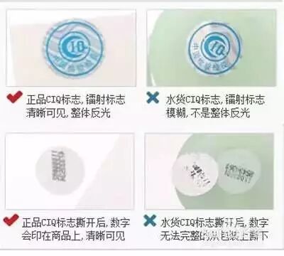 注意查看所選購的進(jìn)口商品上是否貼有激光防偽的“CIQ”標(biāo)志。