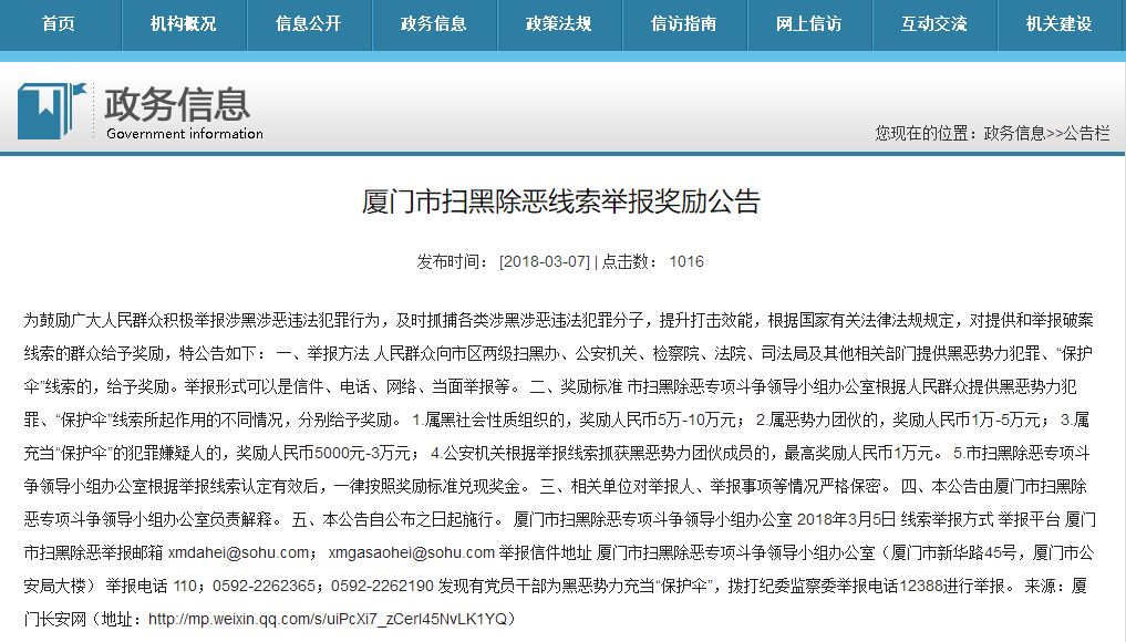 四、本公告由廈門市掃黑除惡專項(xiàng)斗爭(zhēng)領(lǐng)導(dǎo)小組辦公室負(fù)責(zé)解釋。