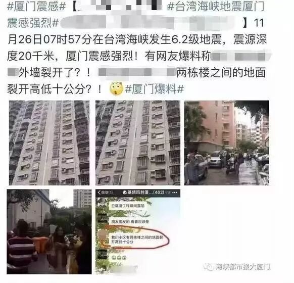 地震后,有網(wǎng)友反映,廈門有一些小區(qū)房子墻開裂了?還有的地方樓房之間地面裂開?