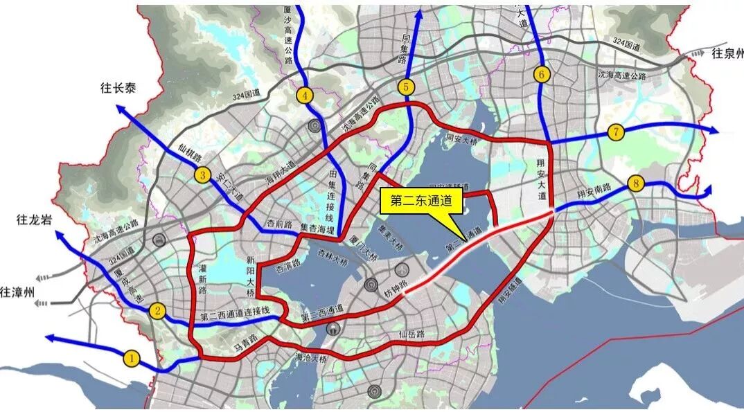 廈門第二東通道是繼廈門大橋、海滄大橋、集美大橋、杏林大橋、翔安隧道、第二西通道(在建)之后的第7條進(jìn)出島通道,預(yù)計(jì)2022年投用。工程總投資預(yù)計(jì)為122.76億元,建設(shè)工期為3.5年。