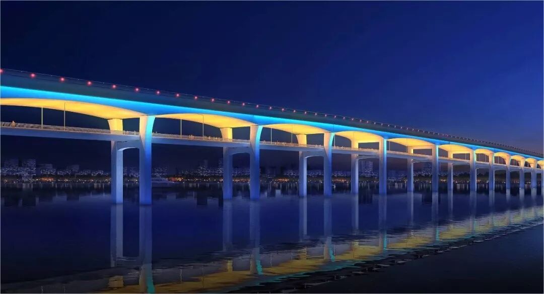大橋橋面造型采用連續(xù)拱的形式,結(jié)合燈光處理,夜景層次豐富,將成為新機(jī)場(chǎng)旅客進(jìn)出廈門市的第一印象及地標(biāo)性建筑。