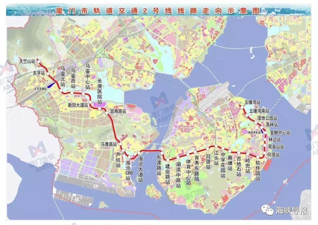 ●廈門地鐵2號(hào)線起于五緣灣站,終點(diǎn)是天竺山站,力爭(zhēng)2019年年底前開(kāi)通試運(yùn)營(yíng)。