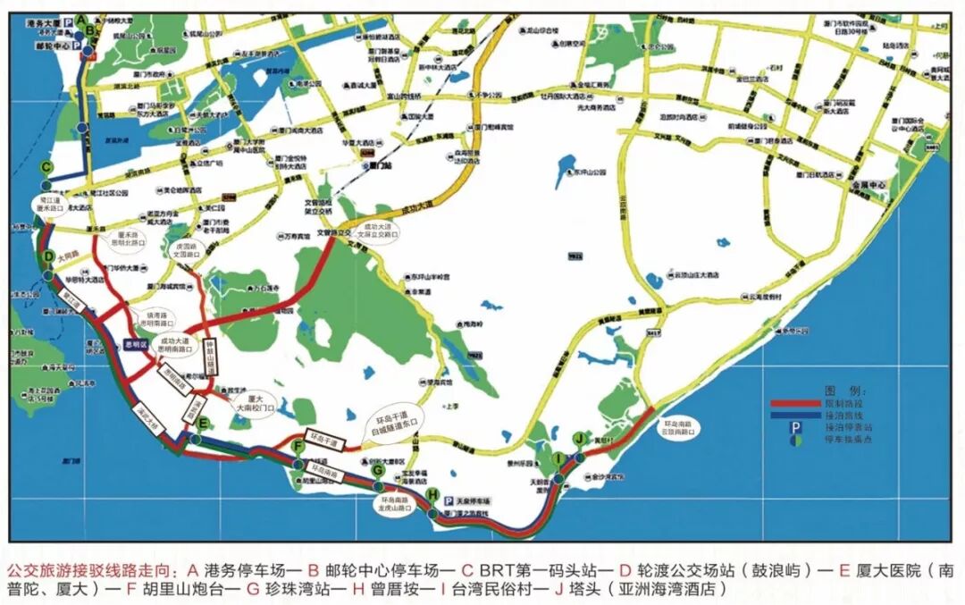 2月5日至10日期間思明南路(演武西路口至廈大大南校門段)全天禁止旅游客車駛?cè)?,需要上下客車輛可以在成功大道演武立交下方道路兩側(cè)臨時???。