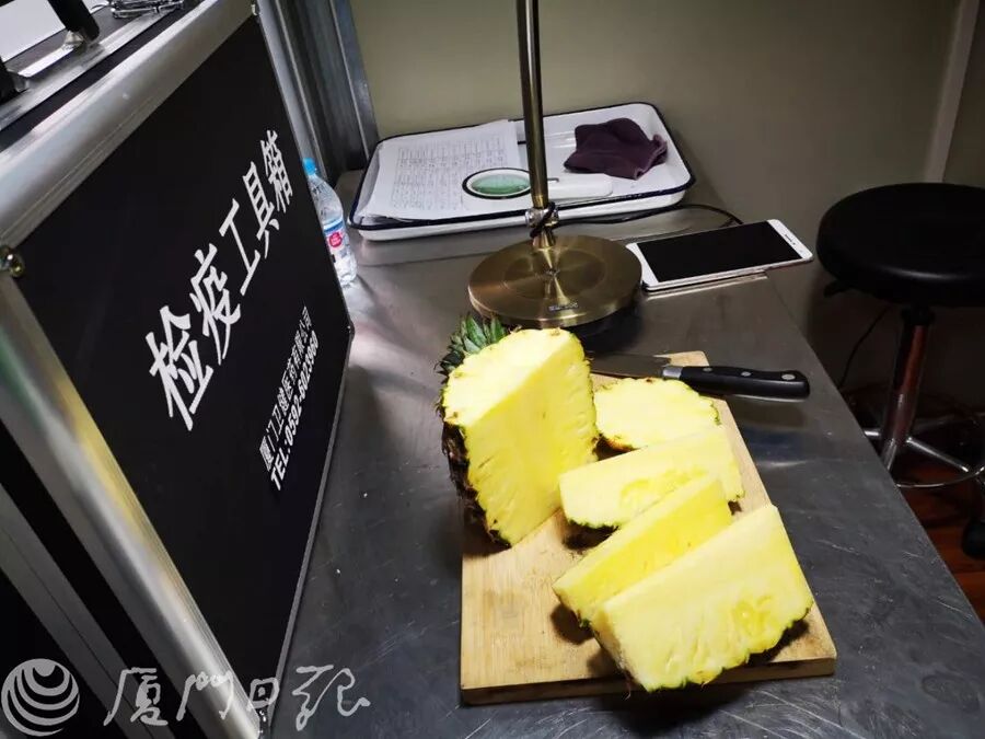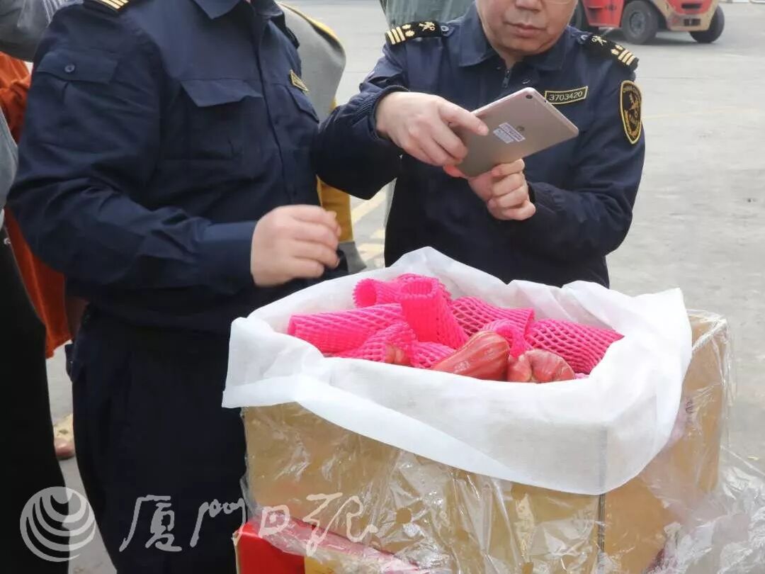 廈門海關(guān)關(guān)員對(duì)水果進(jìn)行仔細(xì)檢查