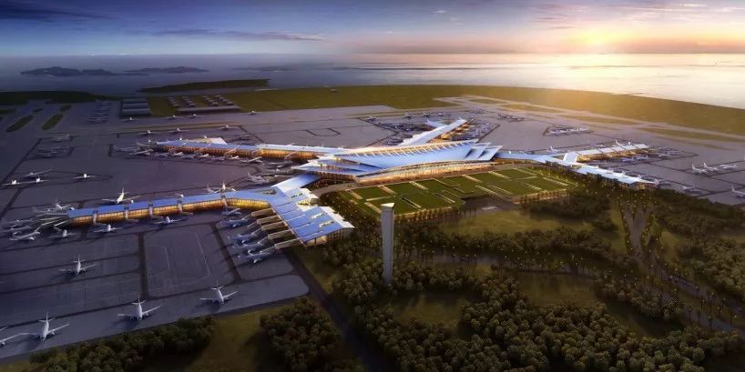 廈門新機場(建設中)位于福建省廈門市翔安區(qū)大嶝街道大嶝島與小嶝島之間,用地規(guī)劃46平方公里,其中填海造地約17平方公里。新機場的飛行區(qū)等級為4F級,跑道長度3800米,屬國際最高等級。航站樓采用一個主樓和6個輻射式指廊相結合的創(chuàng)新構型,外觀上,提取"大厝"出挑飄逸的屋頂作為設計元素,有著濃濃的閩南味。