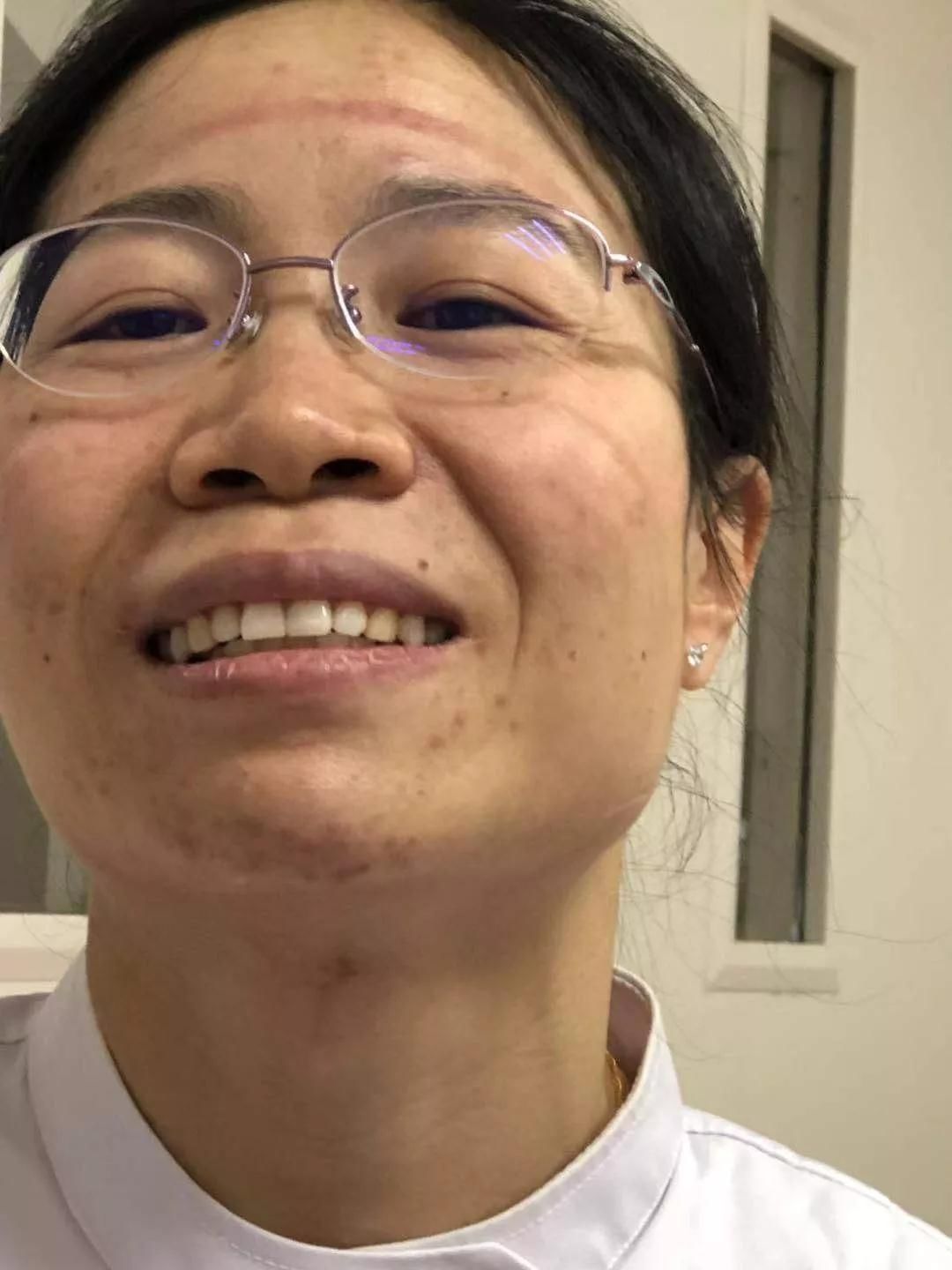 還有很多護(hù)士因?yàn)榇┐鞣雷o(hù)用具久了,臉上、手上都被勒傷了。