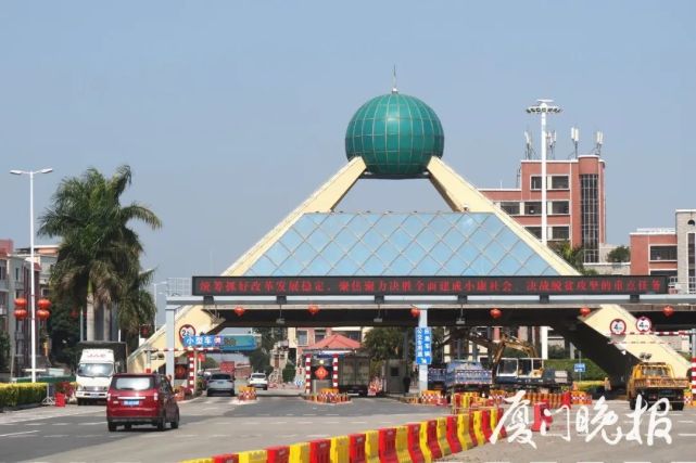 廈門大橋收費(fèi)站頂棚“金字塔”造型別具特色。(廈門晚報(bào)記者 陳立新 攝)