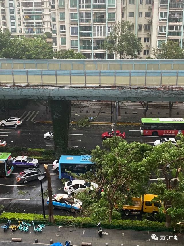 廈門市綠化中心:目前廈禾路、蓮前西路上的折枝、倒伏樹木較多,綠化工人正在清理。因?yàn)楝F(xiàn)在風(fēng)力較大,有的折枝會(huì)突然吹落下來,存在一定的安全隱患,提醒市民盡量不要出門,或避開廈禾路、蓮前西路等路段通行。