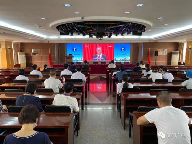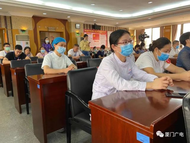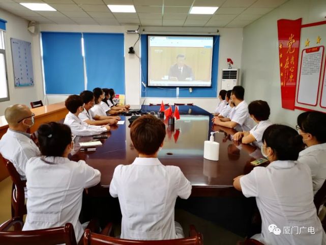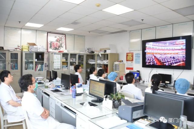 在廈門(mén)大學(xué)附屬第一醫(yī)院杏林分院會(huì)議室,醫(yī)院各臨床科室醫(yī)護(hù)人員正在收看全國(guó)抗擊新冠肺炎疫情表彰大會(huì),并現(xiàn)場(chǎng)聆聽(tīng)習(xí)近平總書(shū)記重要講話(huà)。