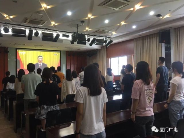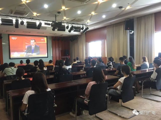 上午10點(diǎn),廈門(mén)大學(xué)組織40名左右?guī)熒砉餐湛戳舜髸?huì)直播。