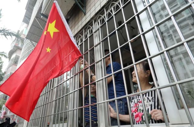 象嶼花園小區(qū)里的老特區(qū)建設(shè)者洪祖庭和陳鳳嬌夫婦接過國旗,一家人開開心心地合影,莊嚴(yán)地將國旗插在陽臺上,讓五星紅旗迎風(fēng)在曾經(jīng)的特區(qū)建設(shè)熱土上空飄揚(yáng)。