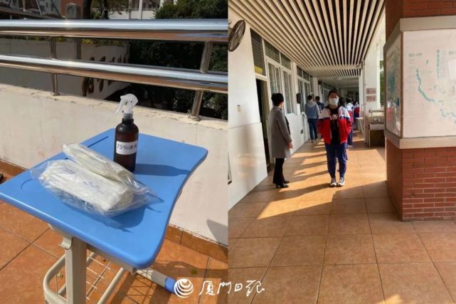 今天早上,廈門一中高三學(xué)生接受檢測(cè)。《廈門日?qǐng)?bào)》記者在廈門一中看到,學(xué)生們排隊(duì)等候時(shí),段長鄭小蓉不斷提醒:一米間隔一米間隔。