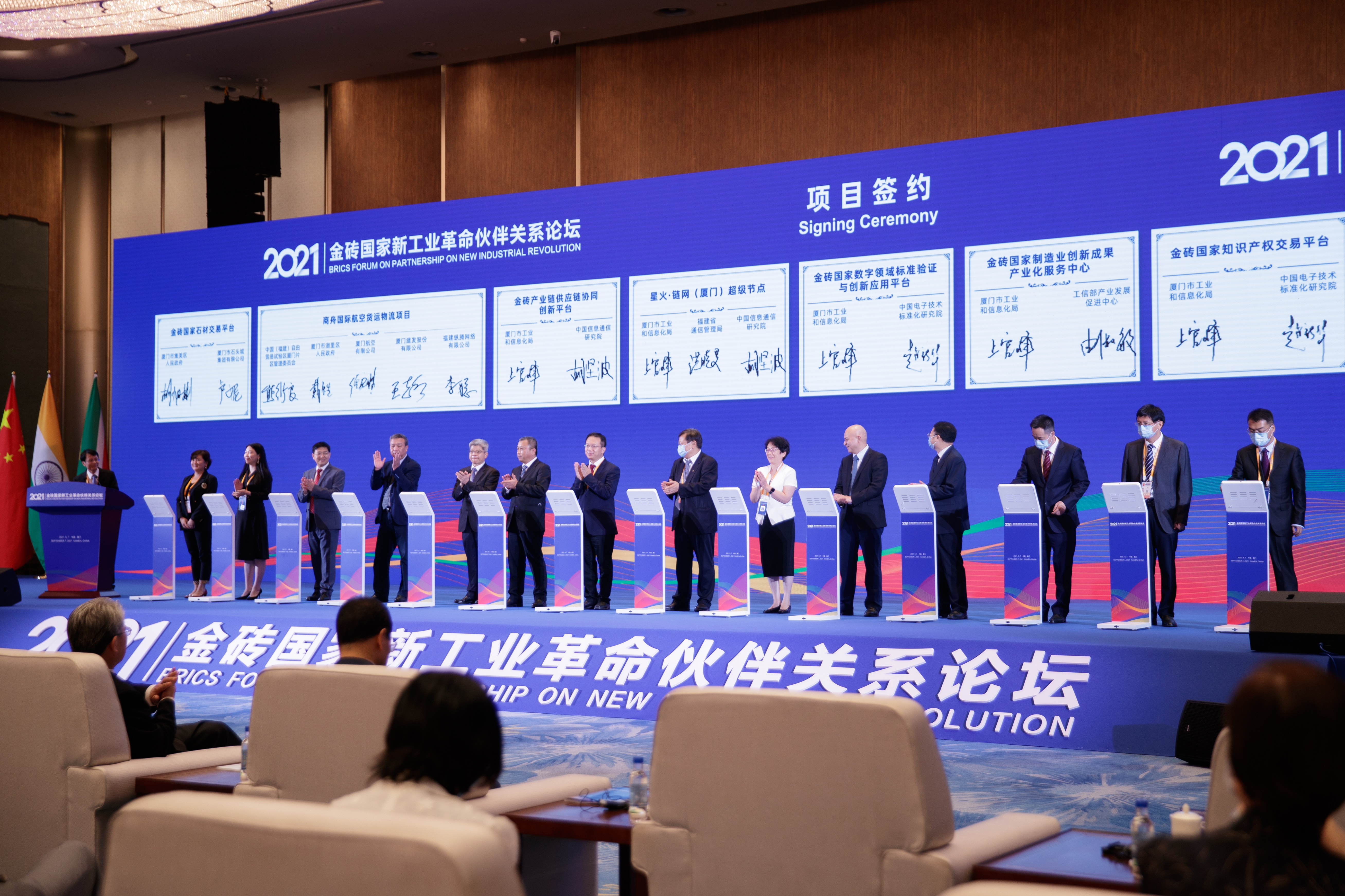 臺(tái)海網(wǎng)9月7日訊 據(jù)福建日?qǐng)?bào)·新福建客戶(hù)端報(bào)道 7日,金磚國(guó)家新工業(yè)革命伙伴關(guān)系創(chuàng)新基地舉行簽約儀式。28個(gè)凸顯金磚成色、總投資金額高達(dá)134.04億元的項(xiàng)目,在海內(nèi)外嘉賓、客商共同見(jiàn)證下,以線(xiàn)上線(xiàn)下相結(jié)合的方式完成簽約。