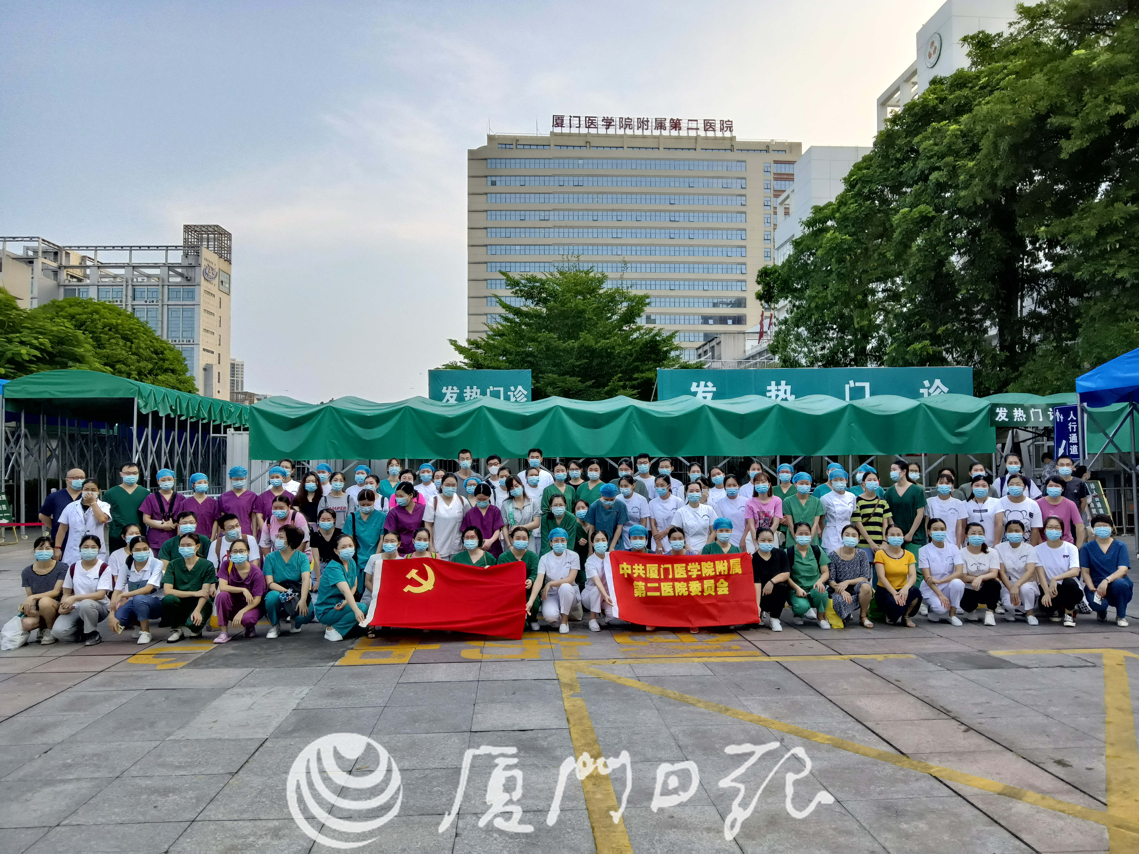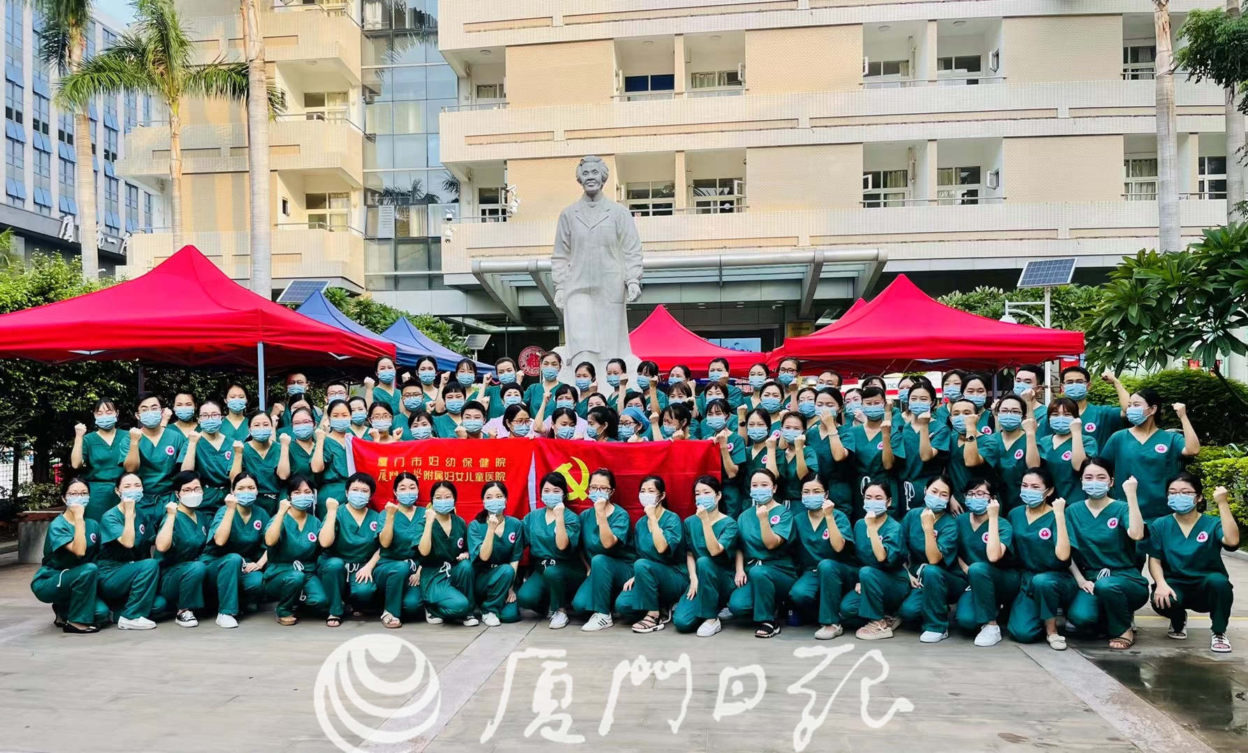 今天清晨6點半,廈門市中醫(yī)院的醫(yī)務(wù)人員出發(fā)采樣前的合影,廈門市中醫(yī)院派出醫(yī)務(wù)人員共129人前往蓮前街道嶺兜、龍山橋、前埔、前埔北四個社區(qū)采樣點。