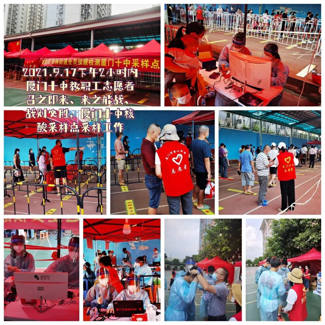 9月17日下午和9月18日,為響應(yīng)“黨旗飄揚(yáng)踐初心 疫情防控當(dāng)先鋒”活動,廈門十中教師志愿服務(wù)隊(duì)動員教師175人次,在學(xué)校黨委及工會的統(tǒng)一部署下,投身廈門十中核酸檢測點(diǎn),協(xié)助紡織社區(qū)開展第二輪全員核酸檢測工作。