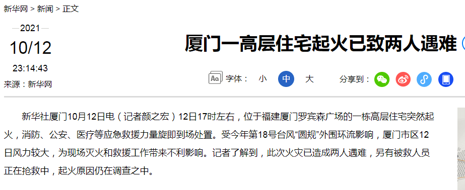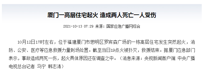 此次火災(zāi)已造成兩人遇難,