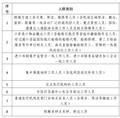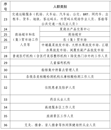 《廈門市重點人群常態(tài)化核酸檢測一覽表》