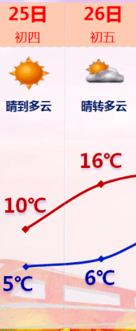 1月24日夜間:晴到多云,東北風(fēng)5~6級、陣風(fēng)7~8級,氣溫:5~9℃;